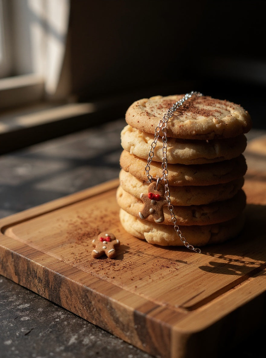 Add a sweet festive touch with this tiny gingerbread boy pendant, handmade from polymer clay and hanging on a hypoallergenic silver-coloured chain. Lightweight, charming, and perfect for gifting or adding a subtle Christmas sparkle to your outfit.